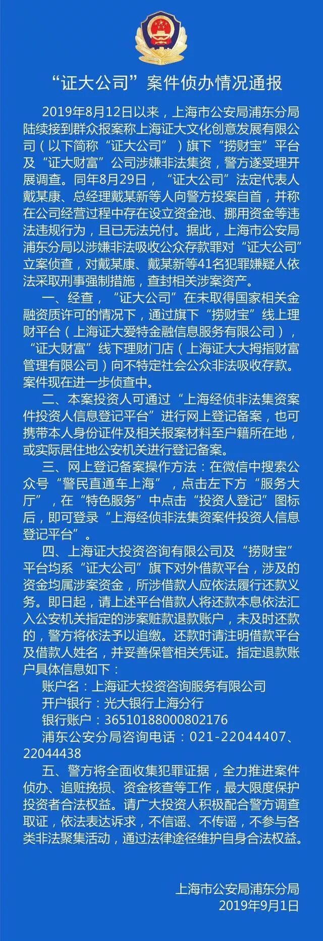 这也是为何警方在案情公布中,提到证大公司没有取得相关资质许可情况下,捞财宝线上理财平台和证大财富线下理财门店,面向社会不特定公众非法吸存,该表述中,就隐含了前文所提的非法吸存的相关条件。而对于保本付息承诺,一般也会成为办案机关调查取证的重点,一般对于线下理财而言,很多平台会通过签订回购协议等方式变相承诺。