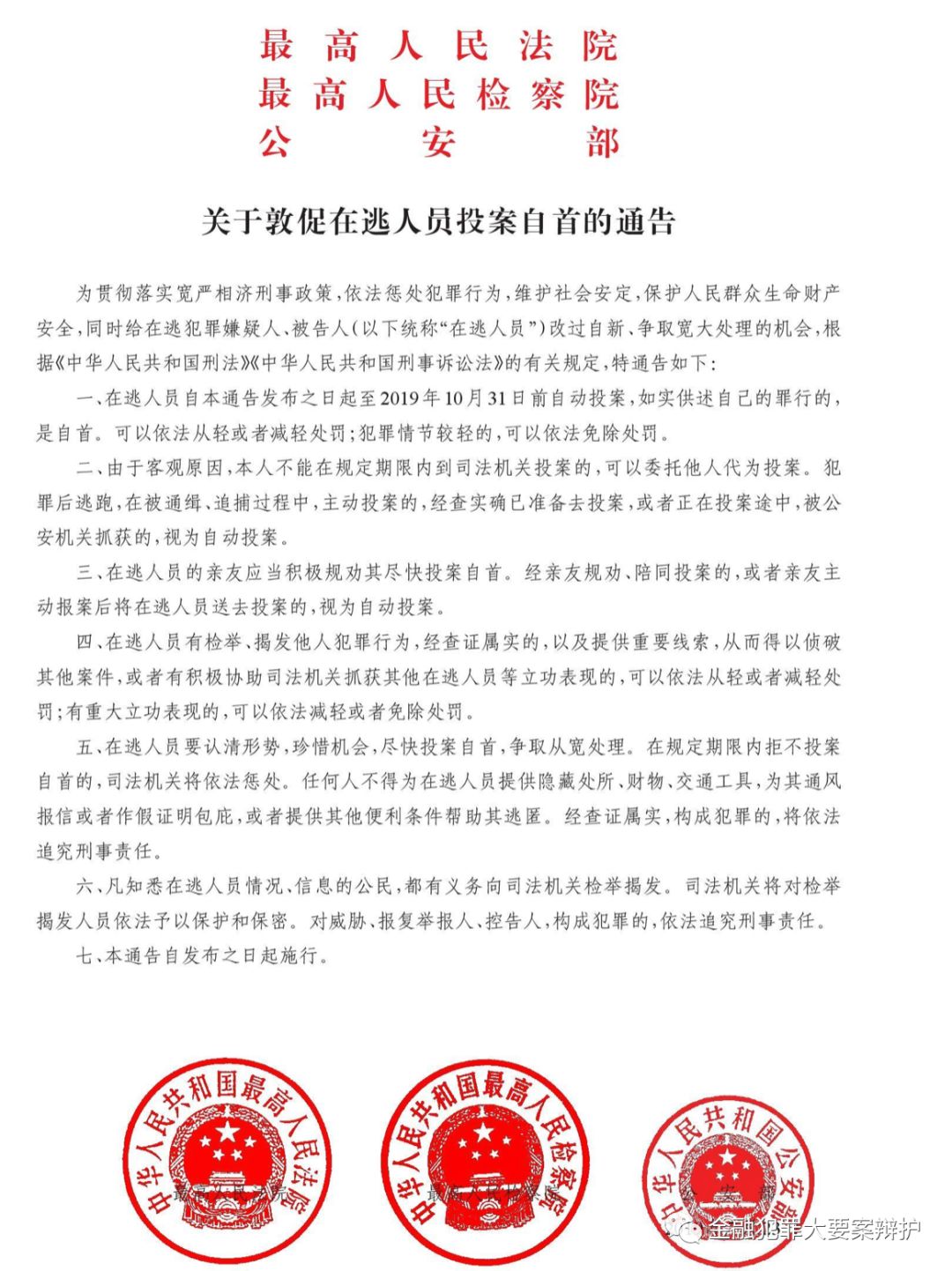 注:七十周年大庆在即,最高法、最高检、公安部在今年七月就发布了敦促在逃人员归案的通告。本文亦受此启发而作,衷心祝愿更多人,不再受负罪逃之苦,从容走出生天。